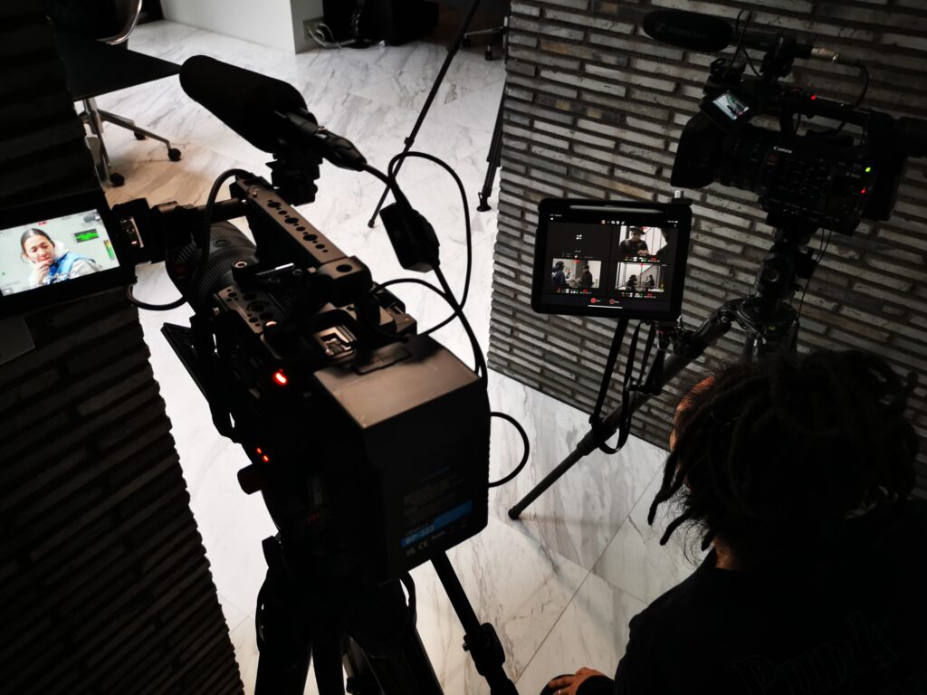 良質な素材を大型モニターでクライアント様、エンドクライアント企業様、メーカー様、監督や照明技師、ヘアメイク、タレントマネージャーなどがご確認頂けるシステムが全て揃ってます。