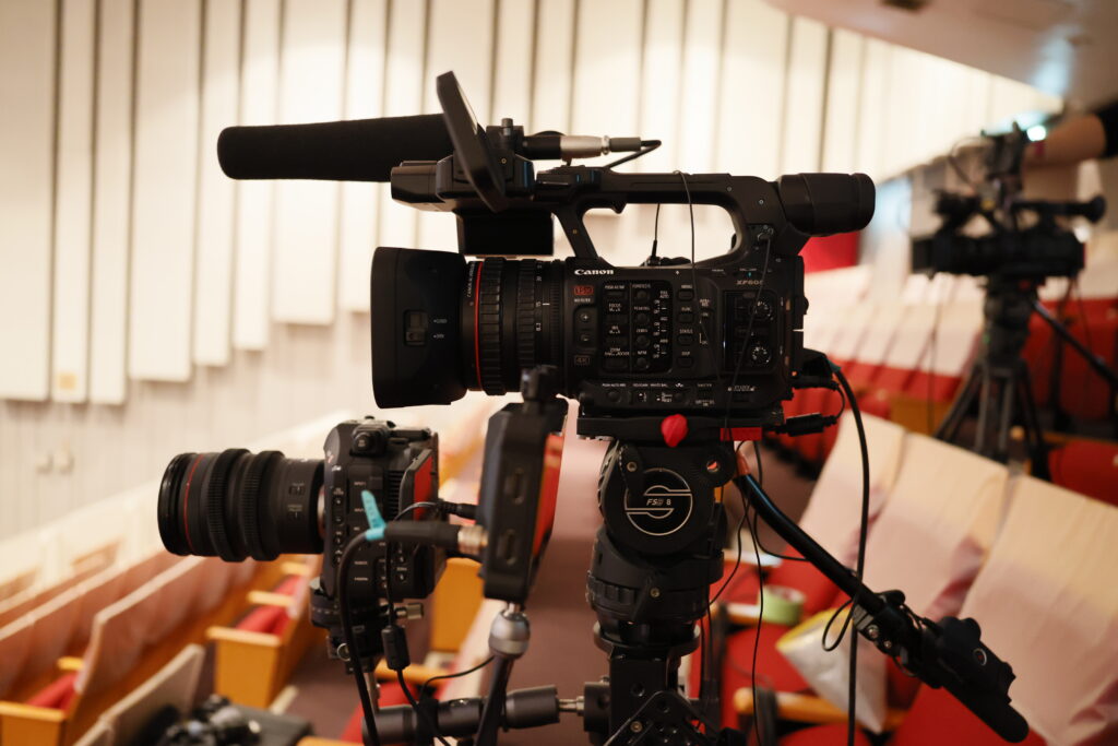 1インチセンサーといったカムコーダーでは最も高画質なセンサーを使用した円滑なズーミングワークが可能で動きのあるステージ撮影はもちろん、セミナーや講演など登壇者様とプロジェクター・スクリーン等を交互に適切なタイミングで収録することも可能です。